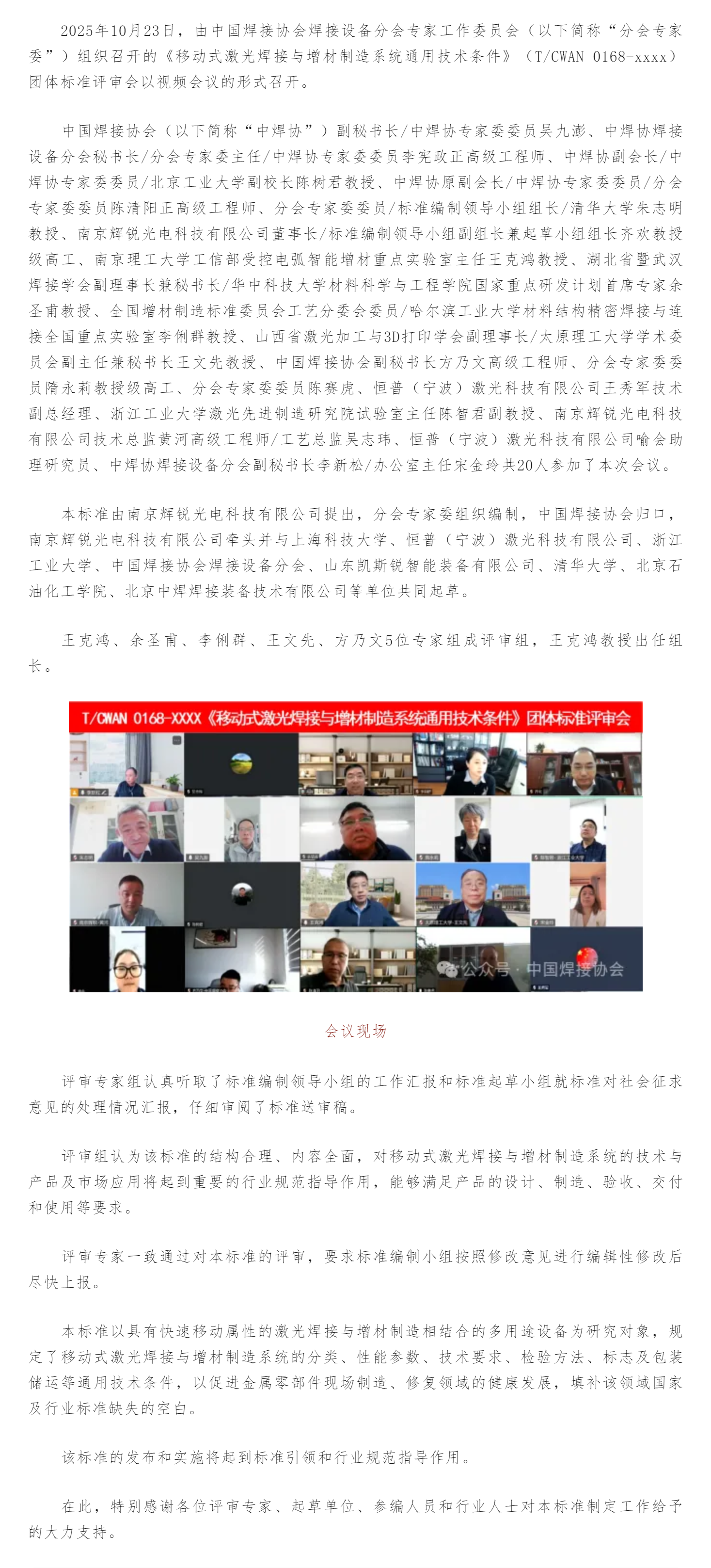 《移动式激光焊接与增材制造系统通用技术条件》团体标准评审会顺利召开