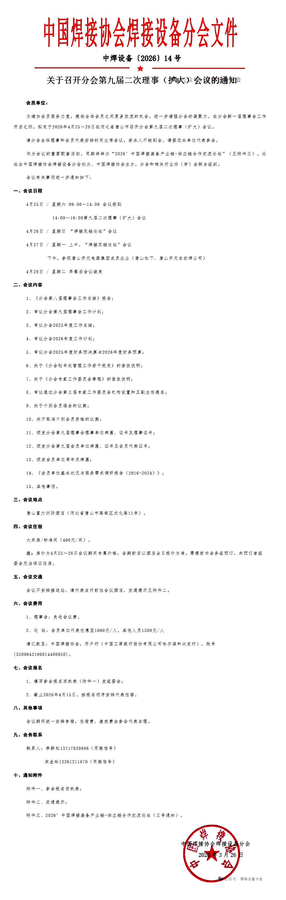 焊接设备分会 发布时间:2026-4-2 阅读:200